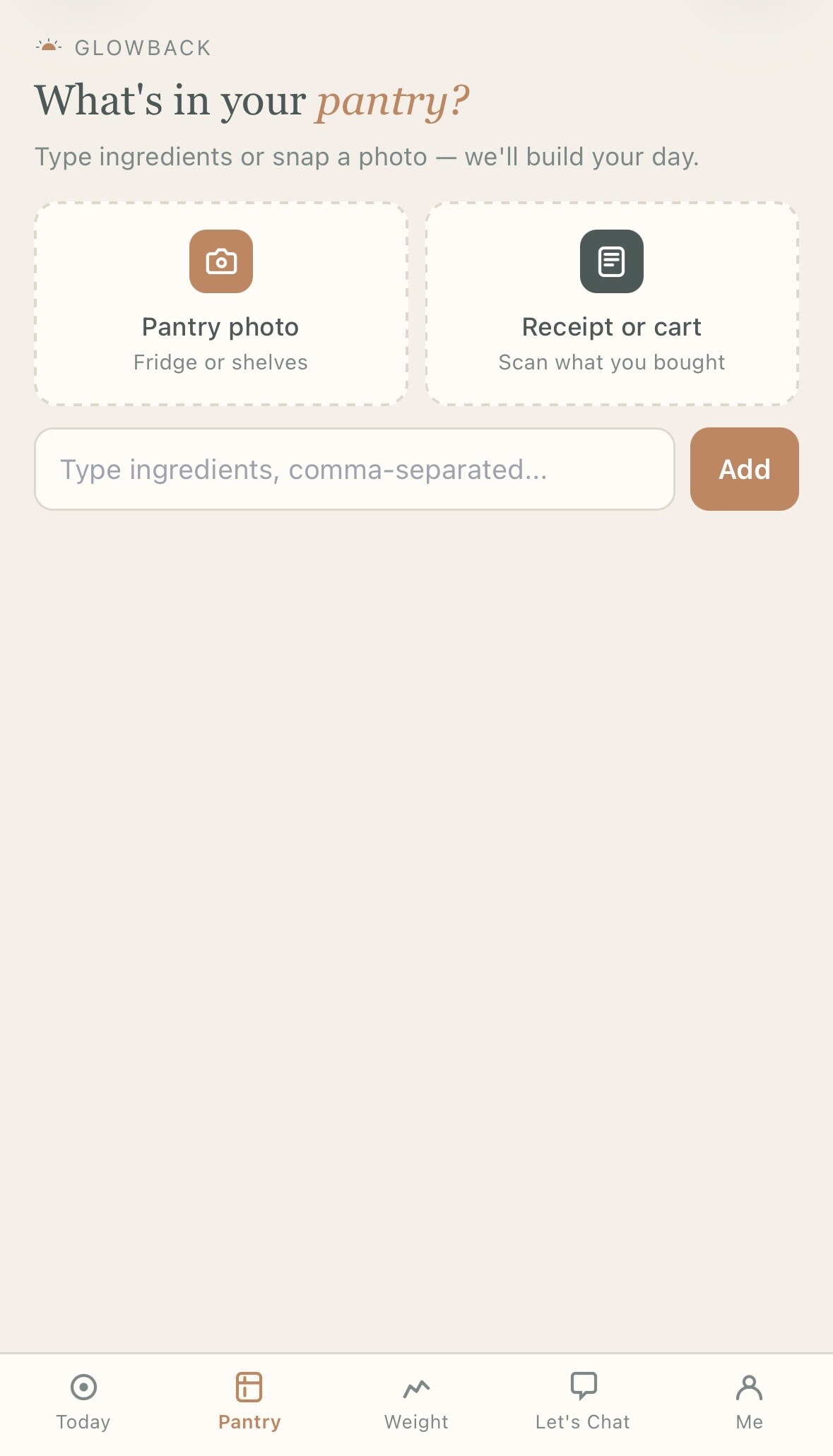The AI nutrition app that adapts to your day, your fridge, and your social calendar. Snap a meal, scan a pantry, reshape the plan without starting over. Built for real life, across every season.